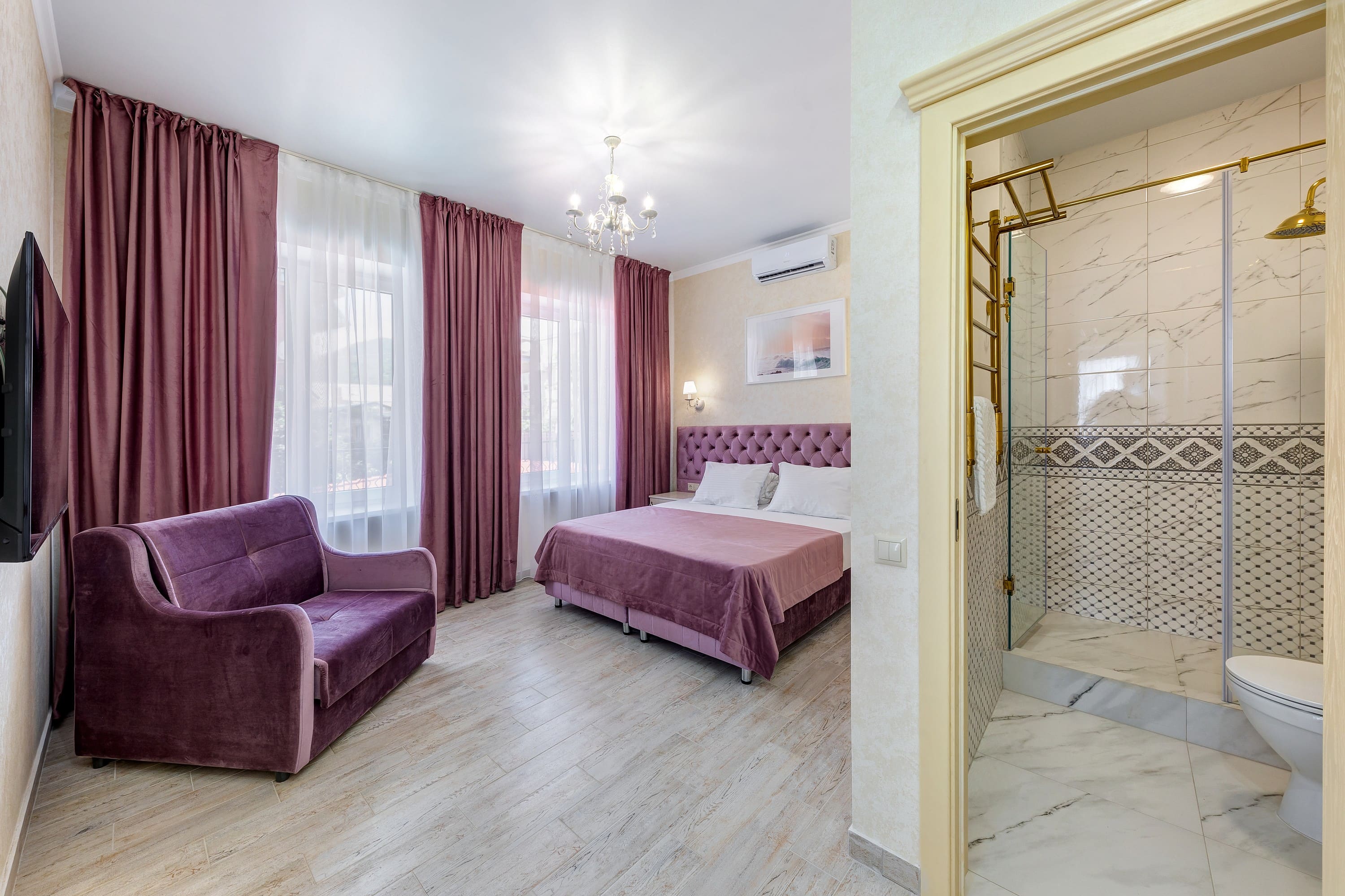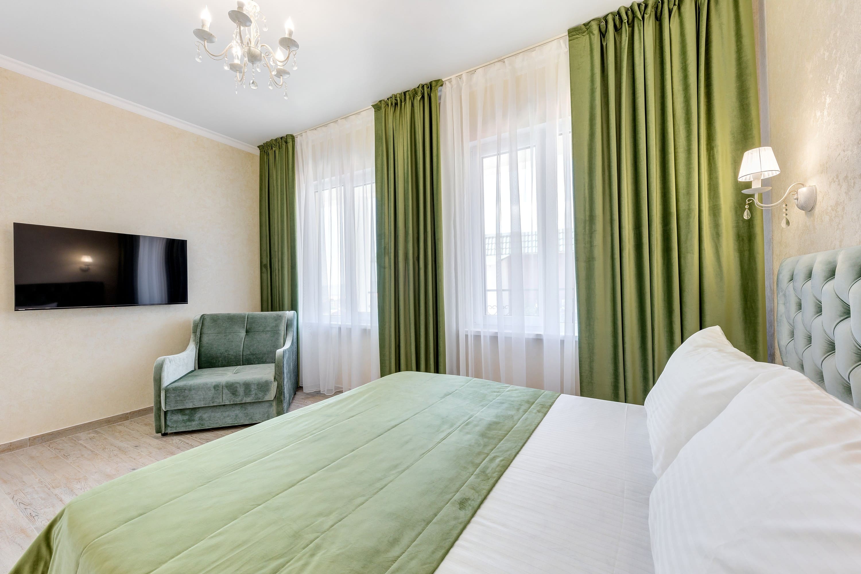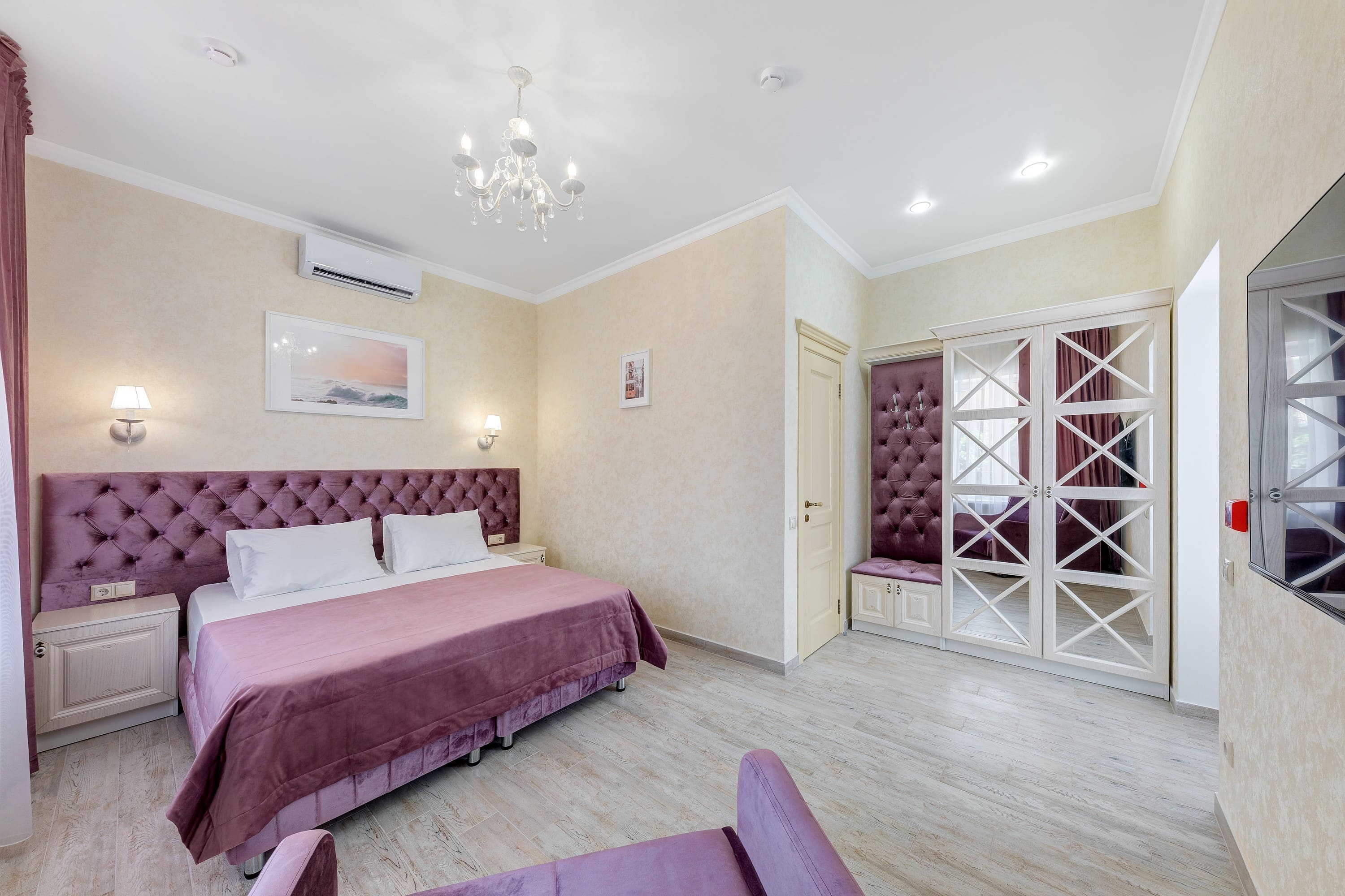 | Люкс Люкс 2-комнатный | 36 кв.м. | 4 чел. | Мебель (вешалка, зеркало, кресло-кровать, кровать двуспальная, прикроватные тумбочки, столик журналь... | |